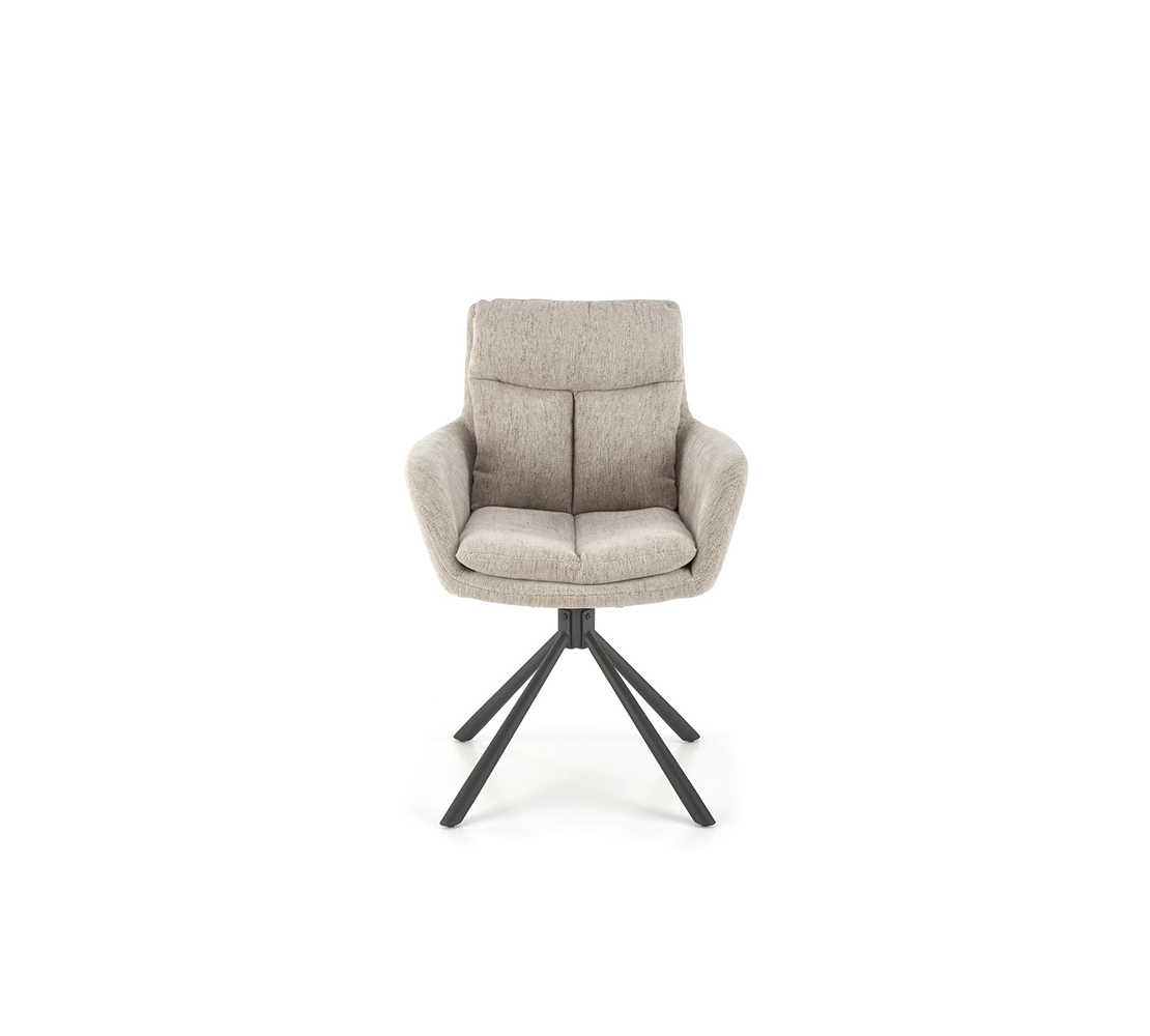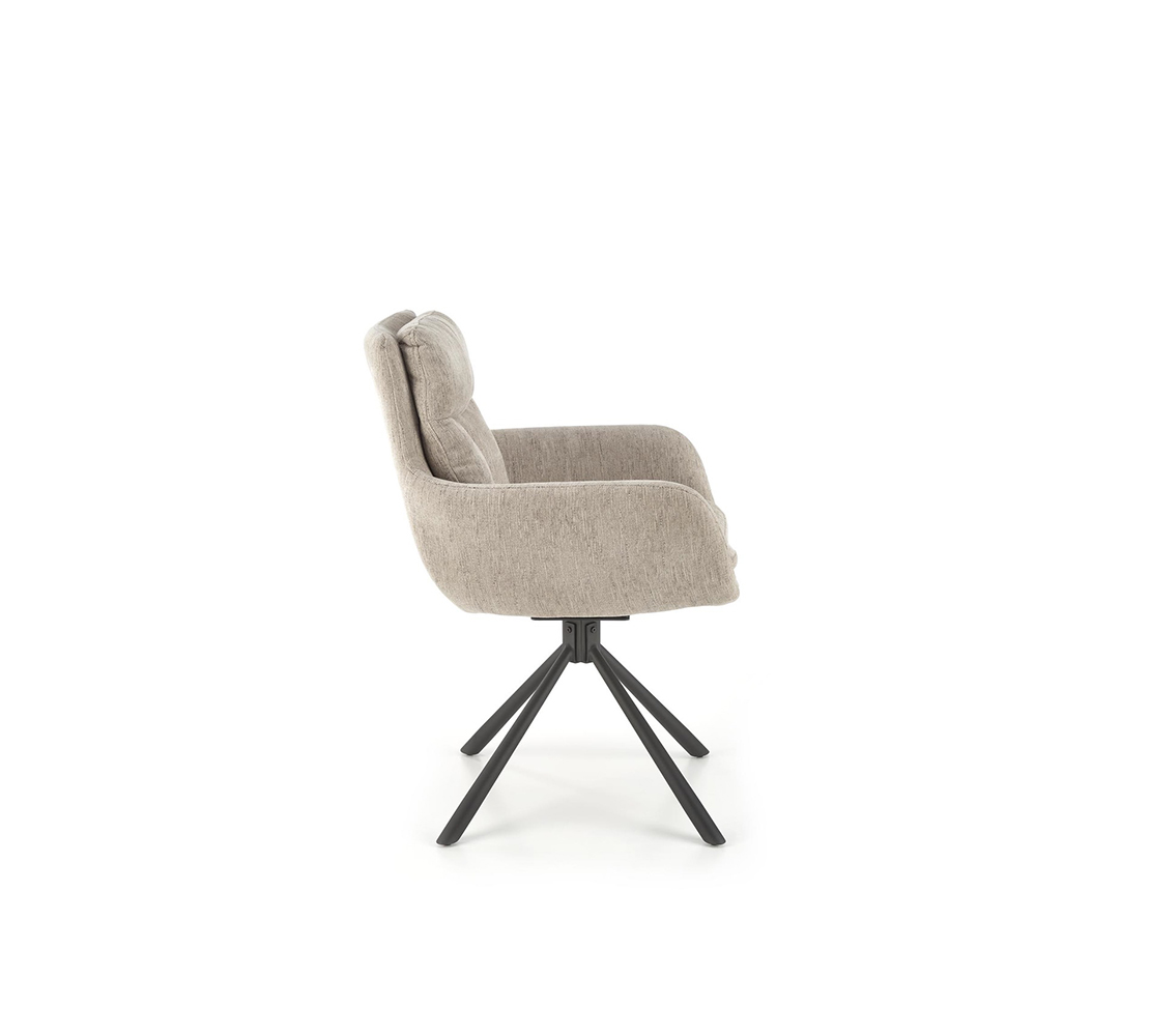 Udobna i moderna trpezarijska stolica od materijala: platno / čelik sa praškastim premazom. Posjeduje i funkciju okretanja.
