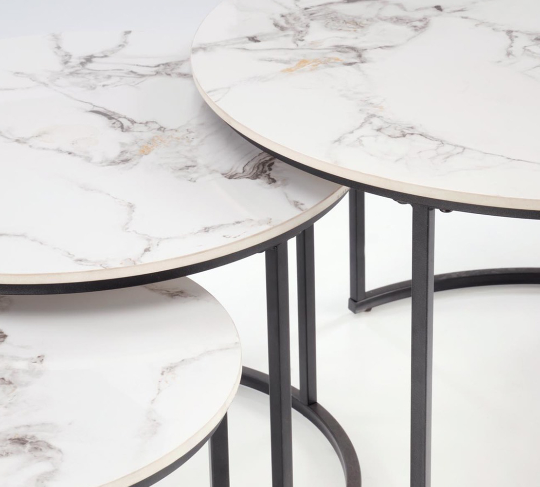 Unesite dašak luksuza i maksimalnu funkcionalnost u vaš dnevni boravak uz set klub stolova Gilda. Ovaj set od tri stola različitih visina i prečnika savršen je spoj modernog dizajna i praktičnosti.