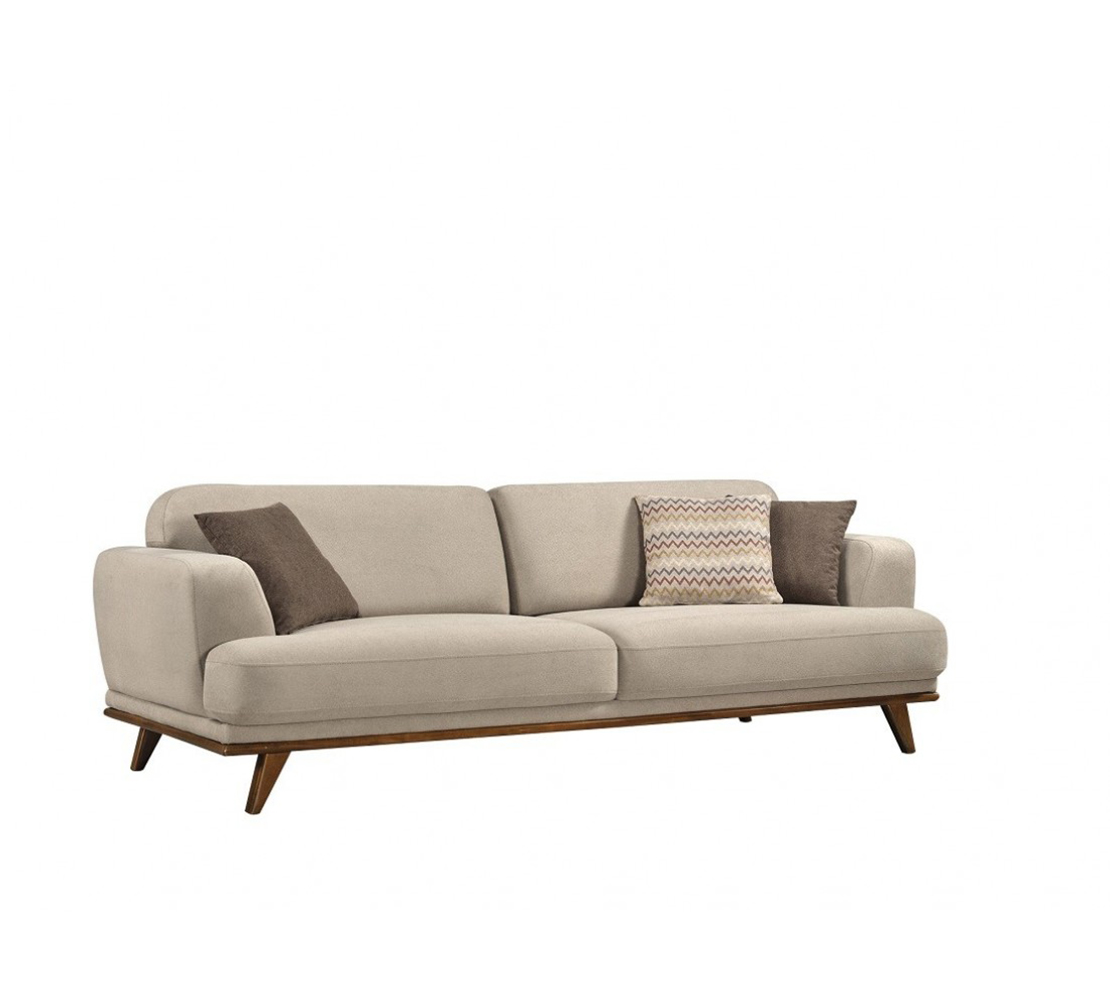 Uživajte u savršenom spoju modernog dizajna i vrhunske udobnosti uz trosjed Merry. Njegove čiste linije, bež tkanina i elegantna drvena baza čine ga idealnim izborom za svaki savremeni dnevni boravak. Učinite svoj dom toplijim, ugodnijim i mjestom gdje se stil susreće s opuštanjem.