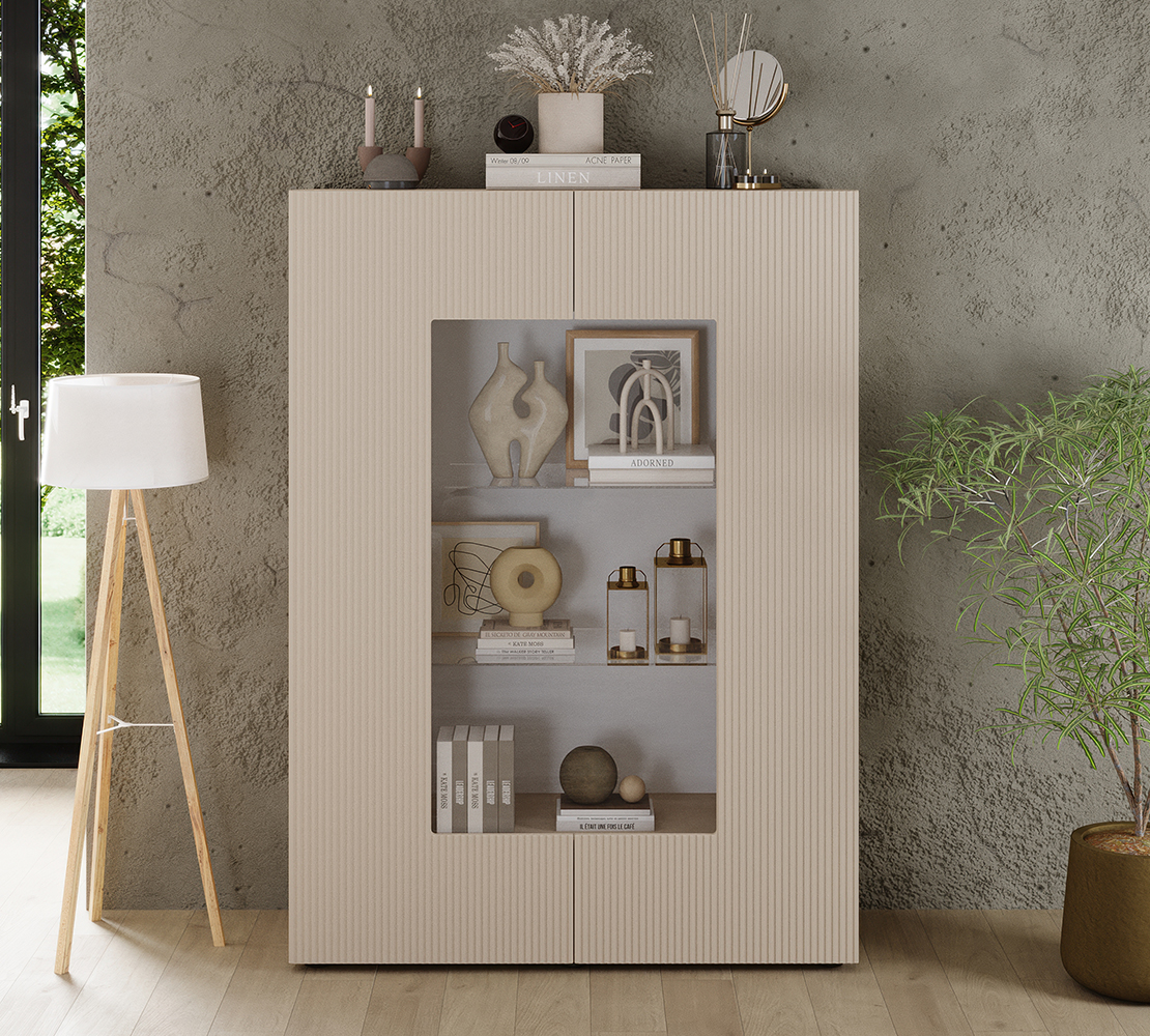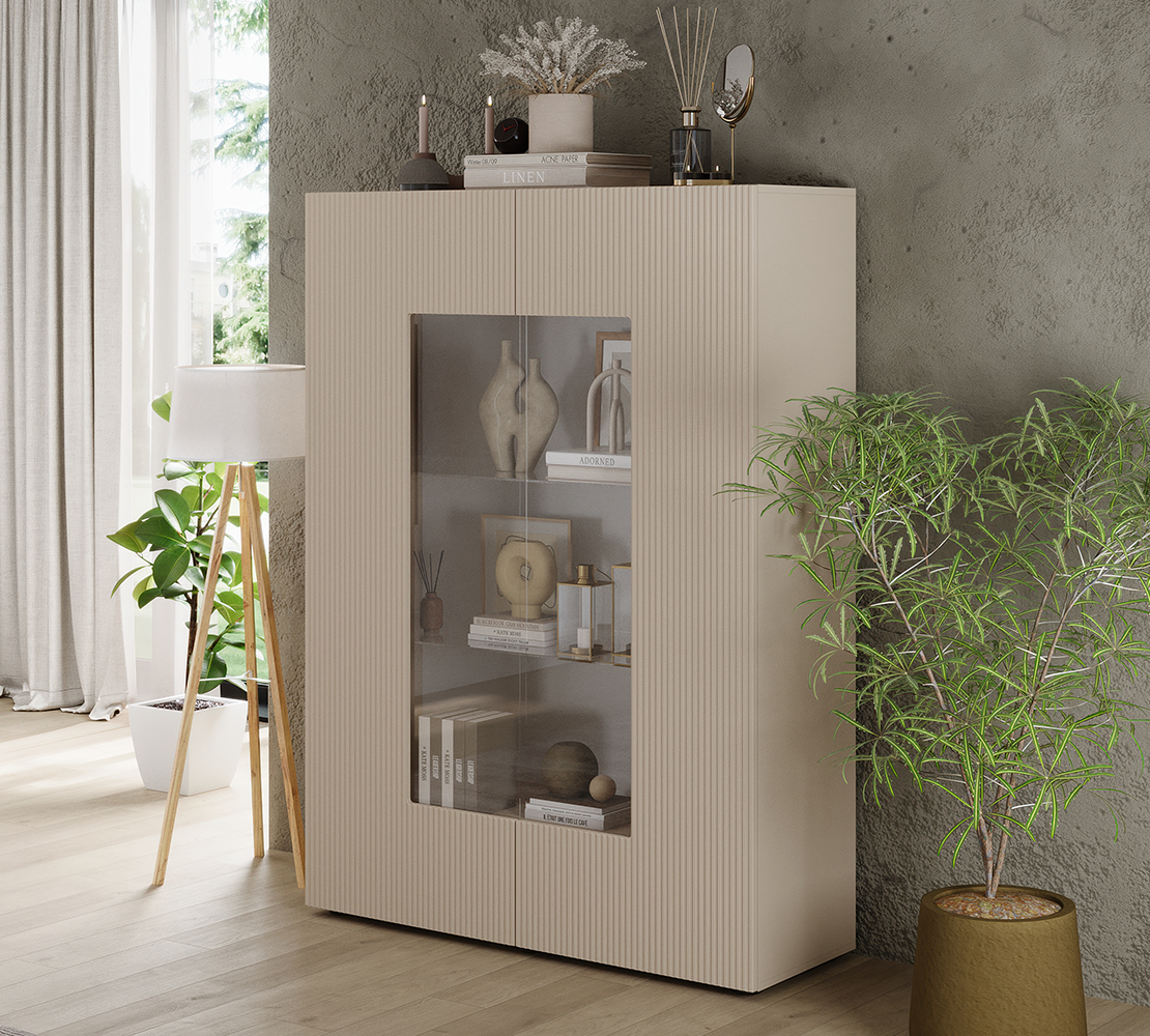 Unesite dozu profinjenosti u svoj dnevni boravak uz vitrinu Rio. Ovaj komad namještaja savršeno spaja minimalistički dizajn i funkcionalnost, ističući se svojim specifičnim rebrastim frontama koje prostoru daju dubinu i moderan karakter.